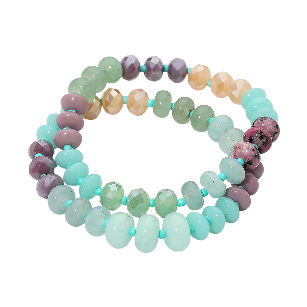 2PCS - Faceted Pebble Beaded Stretch Multi Layered Bracelets