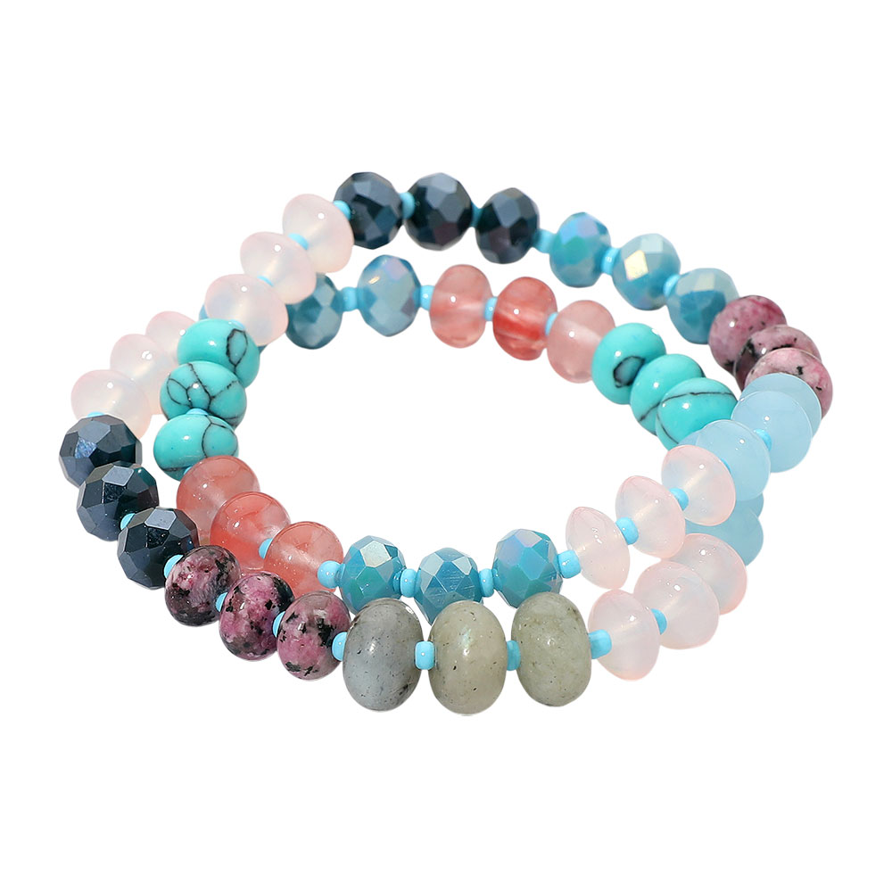 2PCS - Faceted Pebble Beaded Stretch Multi Layered Bracelets 2PCS - Faceted Pebble Beaded Stretch Multi Layered Bracelets 2PCS - Faceted Pebble Beaded Stretch Multi Layered Bracelets