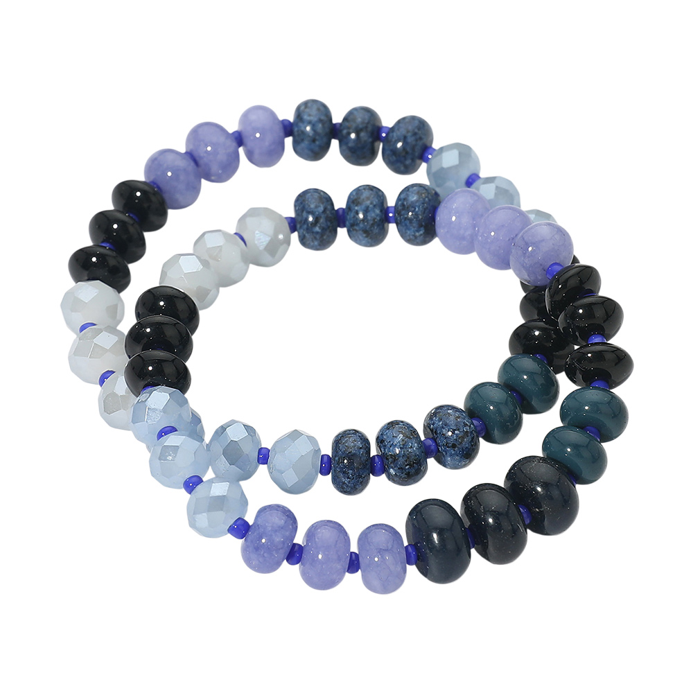 2PCS - Faceted Pebble Beaded Stretch Multi Layered Bracelets