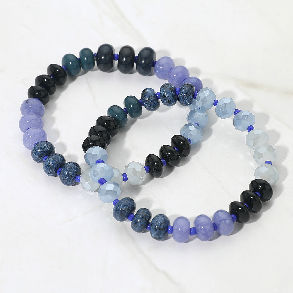 Details • Size : 0.7" H • Stretchable • This stretch bracelet set features smooth and faceted beads arranged in a balanced mix of shapes and finishes. The versatile design layers effortlessly for everyday style or adds a subtle statement to elevated looks, offering a refined and modern accessory option. • Lead and Nickel Compliant