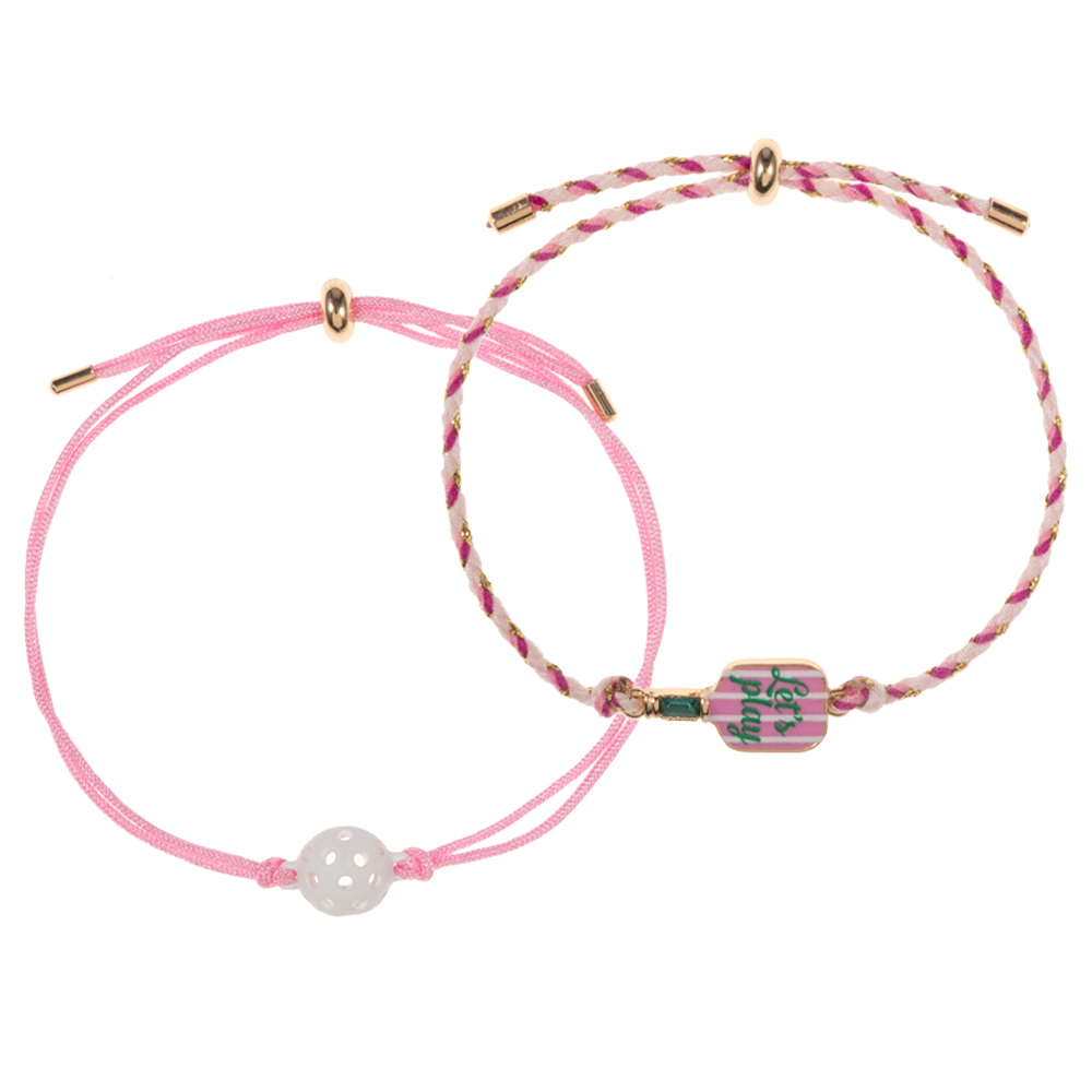 2PCS - LETS PLAY Pickleball Paddle Ball Accent Adjustable Cinch Pull Tie Bracelets