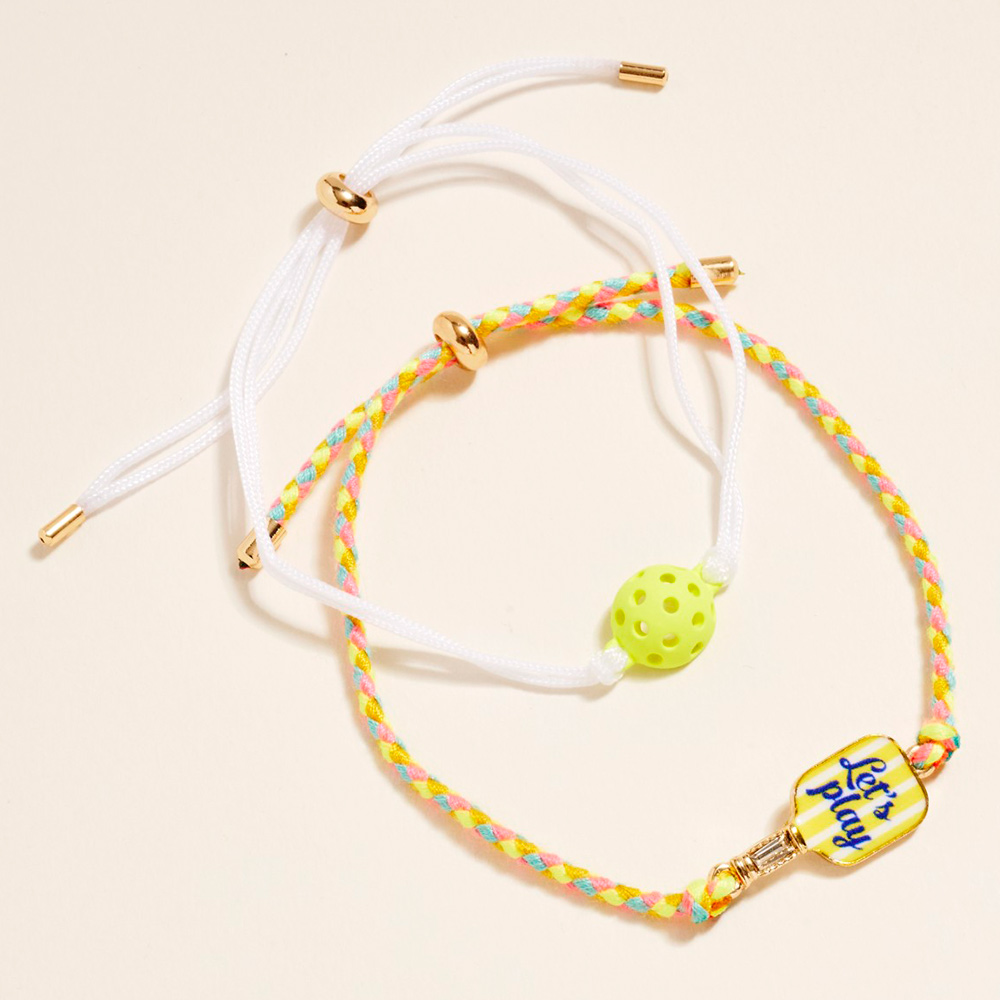 • This adjustable bracelet set features a playful pickleball theme with a sporty charm and coordinating cord design for everyday wear. Designed with flexible sizing for a comfortable fit, these bracelets are perfect for stacking, gifting, team events, or casual accessory collections celebrating an active and fun lifestyle.