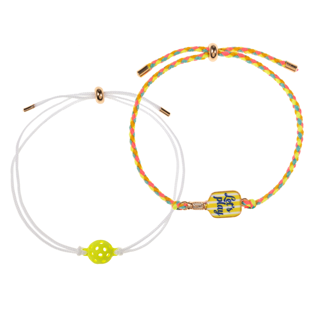 2PCS - LETS PLAY Pickleball Paddle Ball Accent Adjustable Cinch Pull Tie Bracelets
