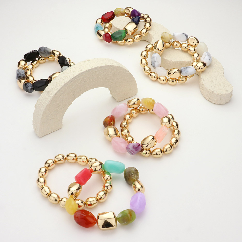 2PCS - Natural Pebble Stone Metal Ball Beaded Stretch Layered Bracelets