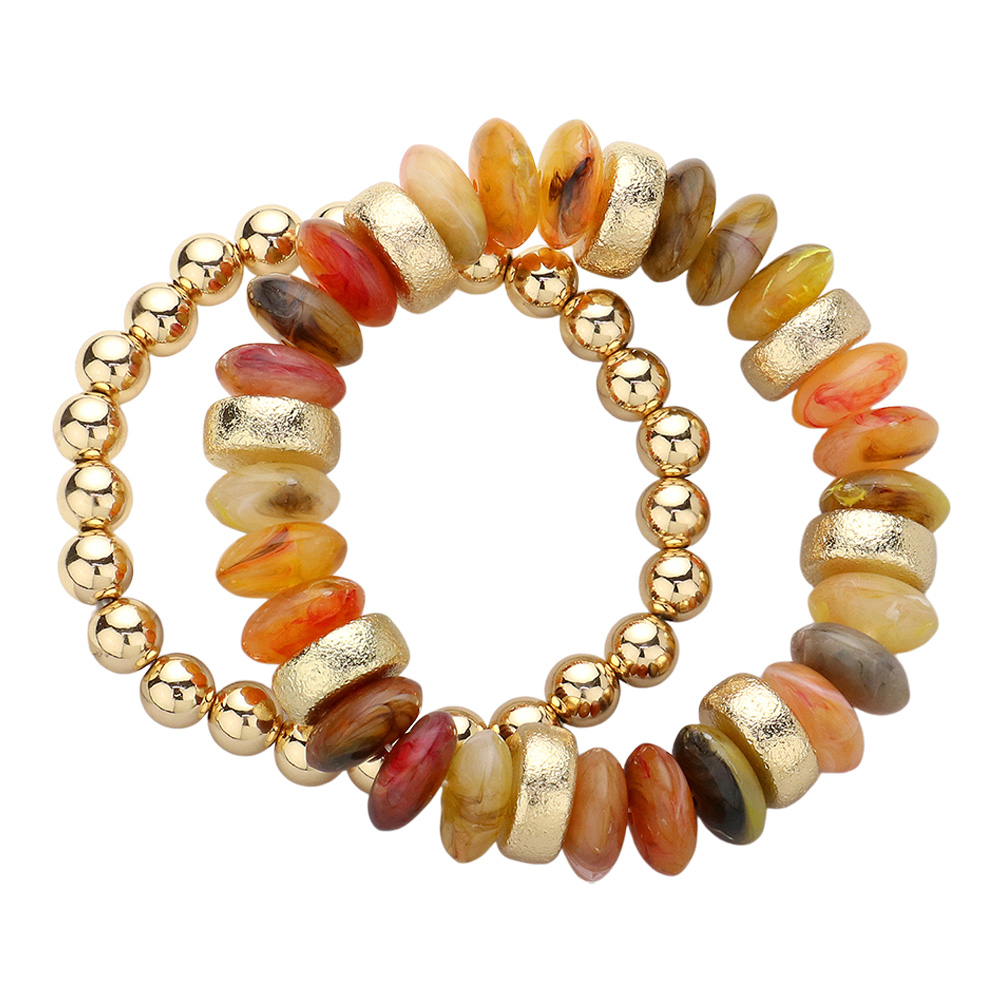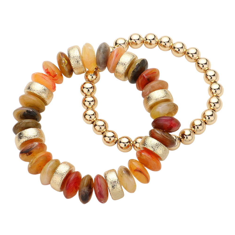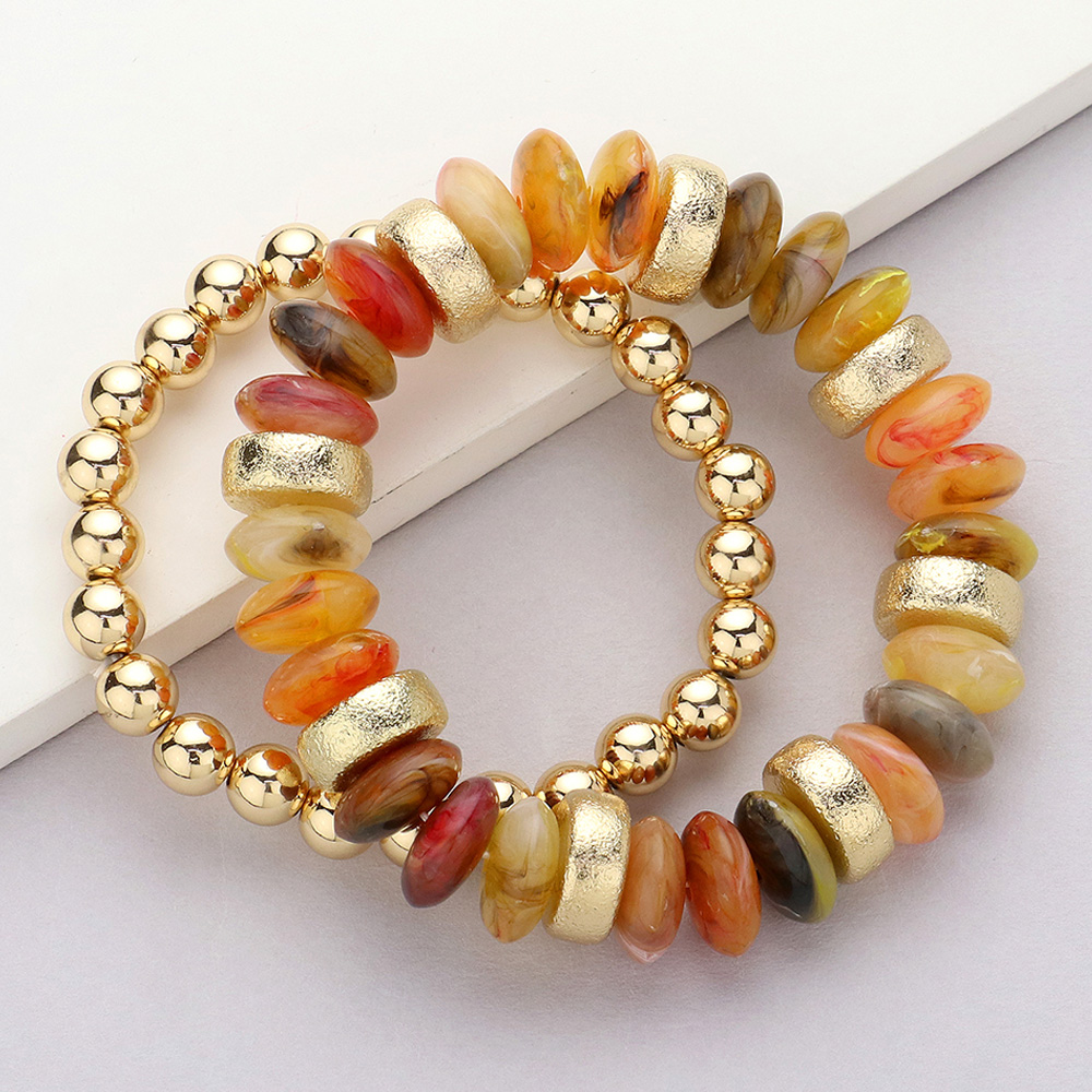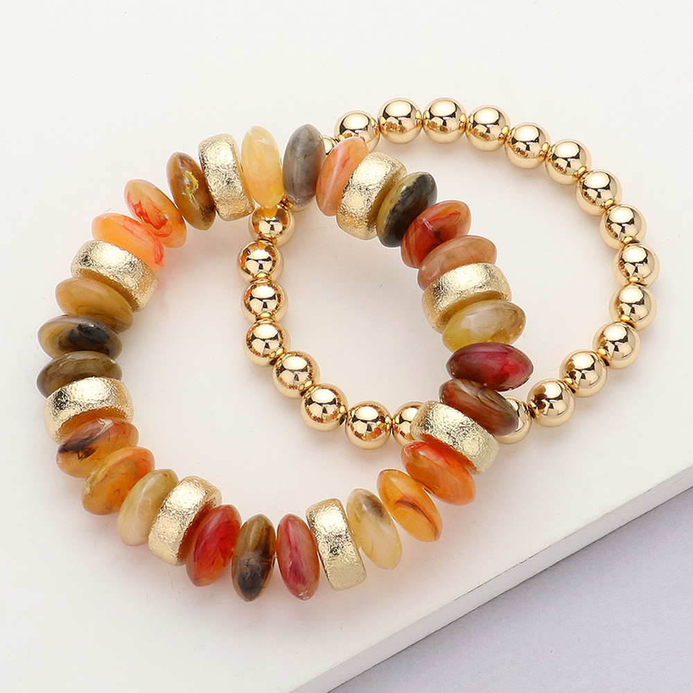 2PCS - Natural Stone Metal Ball Beaded Stretch Double Layered Bracelets