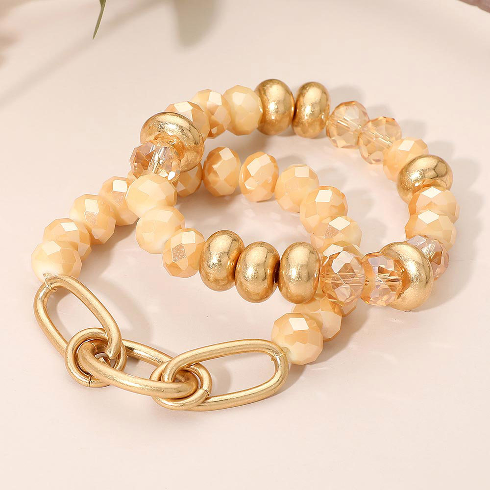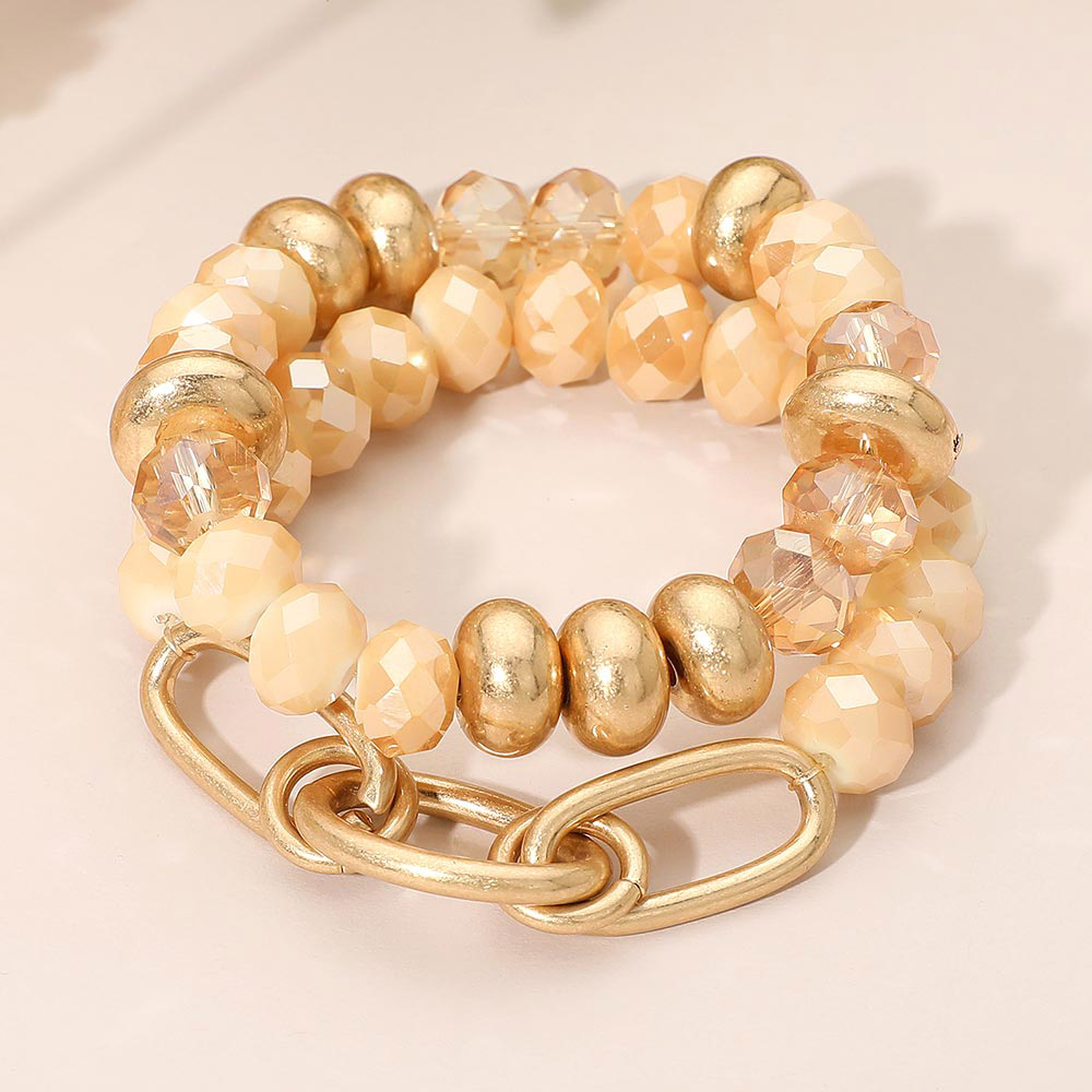 2PCS - Oval Link Accent Faceted Beaded Stretch Multi Layered Bracelets
