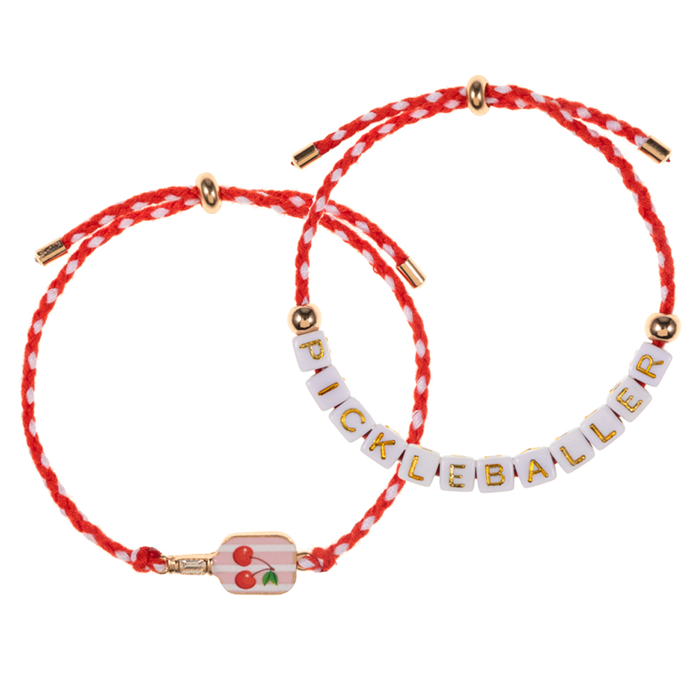 • This adjustable cord bracelet set features playful letter beads spelling pickleball along with a coordinating charm bracelet for a fun, sporty look. Designed for easy wear and flexible sizing, these bracelets are perfect for everyday stacking, pickleball enthusiasts, team gifts, and casual accessory collections with an active lifestyle theme.