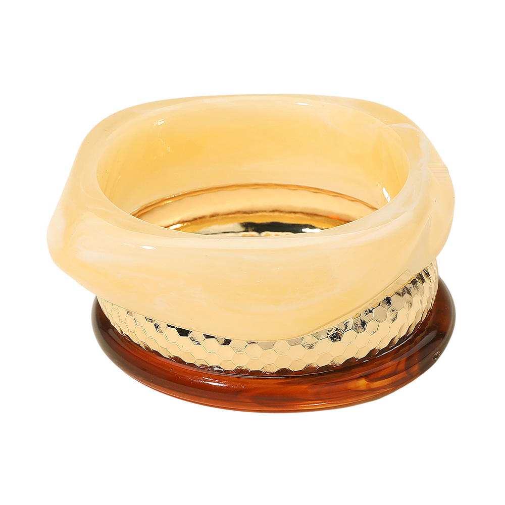 3PCS - Chunky Abstract Resin Hammered Metal Bangle Multi Layered Bracelets