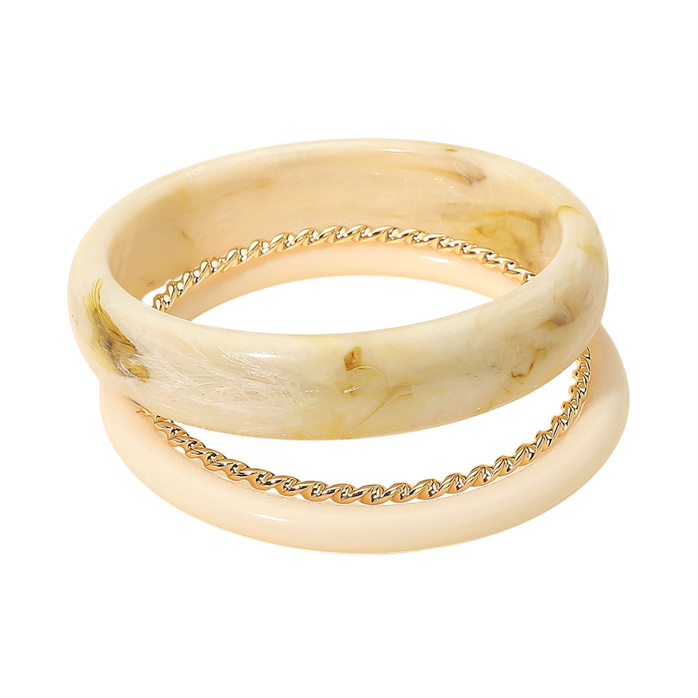 3PCS - Chunky Marbled Resin Twisted Metal Bangle Multi Layered Bracelets