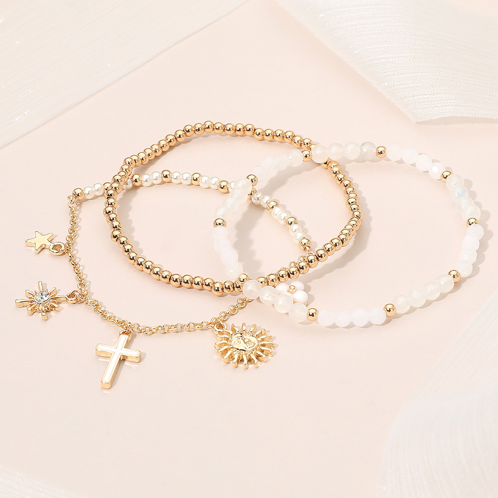 3PCS - Cross Flower Star Sunburst Charm Pearl Metal Ball Faceted Beaded Stretch Multi Layered Bracelets 3PCS - Cross Flower Star Sunburst Charm Pearl Metal Ball Faceted Beaded Stretch Multi Layered Bracelets 3PCS - Cross Flower Star Sunburst Charm Pearl Metal Ball Faceted Beaded Stretch Multi Layered Bracelets