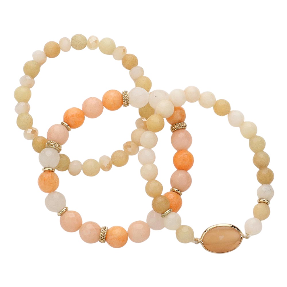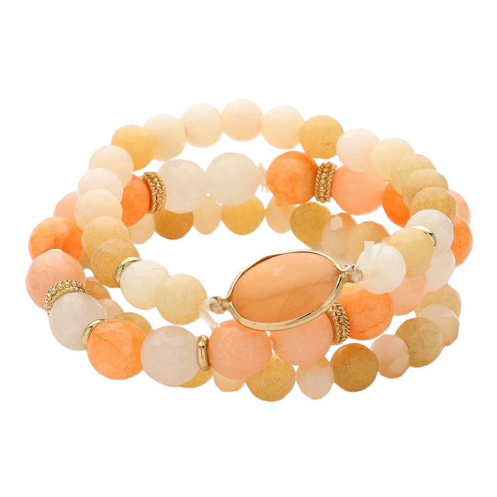 Details • Size : 1" H • Stretchable • Add a warm, radiant touch to your style with this multi-layer beaded bracelet set featuring soft-toned beads and a striking oval centerpiece. Designed for effortless stacking and comfort, this elegant stretch bracelet enhances any casual or chic outfit with its natural glow. • Lead and Nickel Compliant