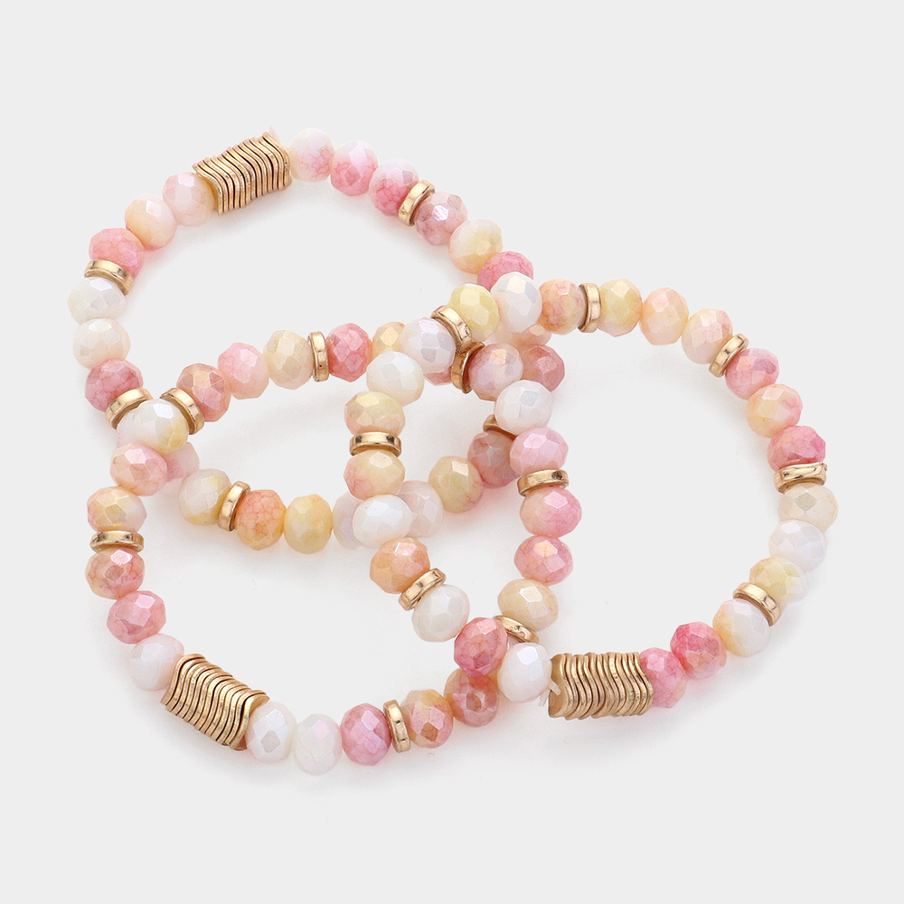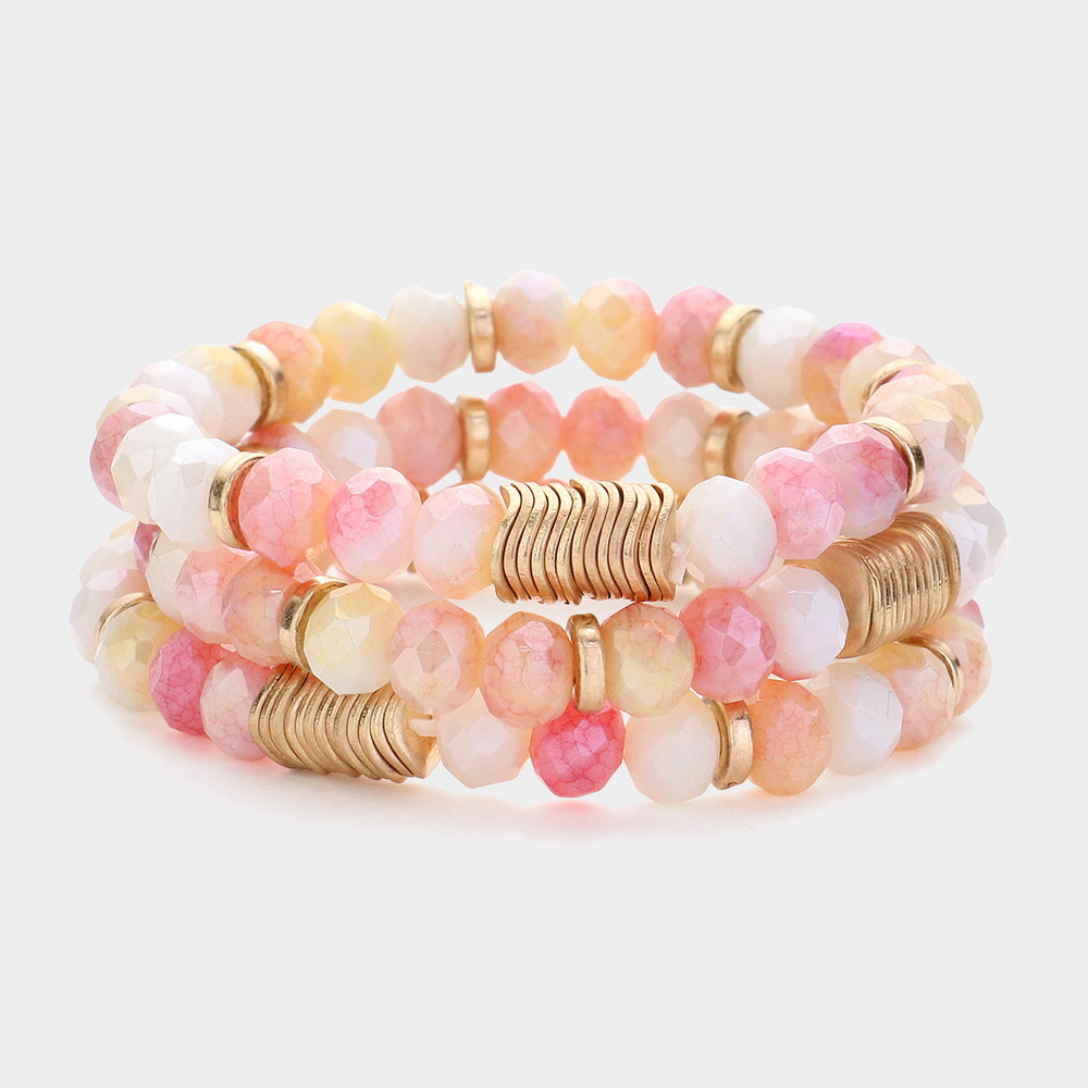 3PCS - Faceted Ombre Beaded Stretch Multi Layered Bracelets
