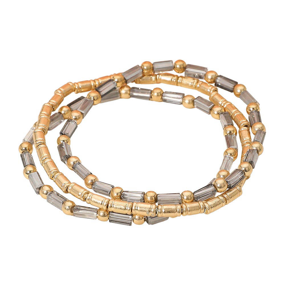 3PCS - Faceted Tube Beaded Stretch Multi Layered Bracelets