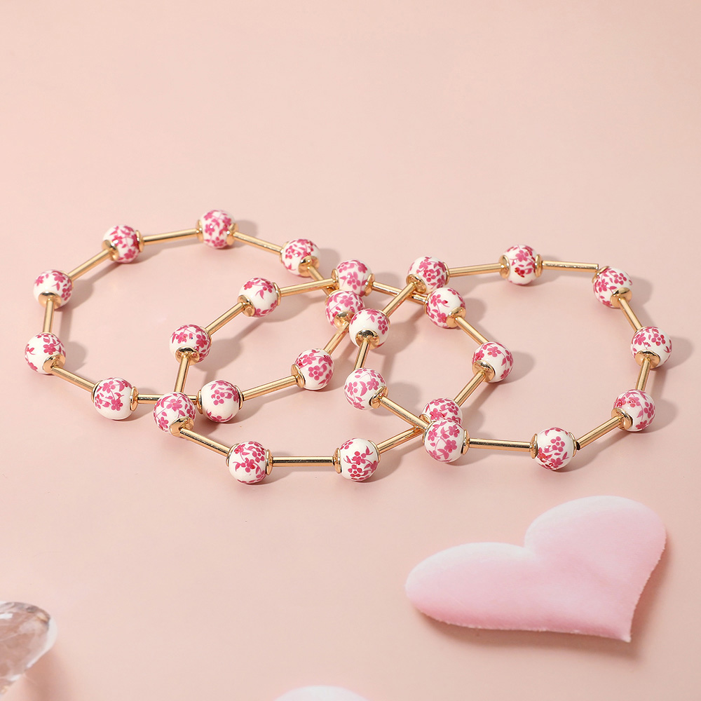 3PCS - Floral Ceramic Ball Beaded Stretch Multi Layered Bracelets