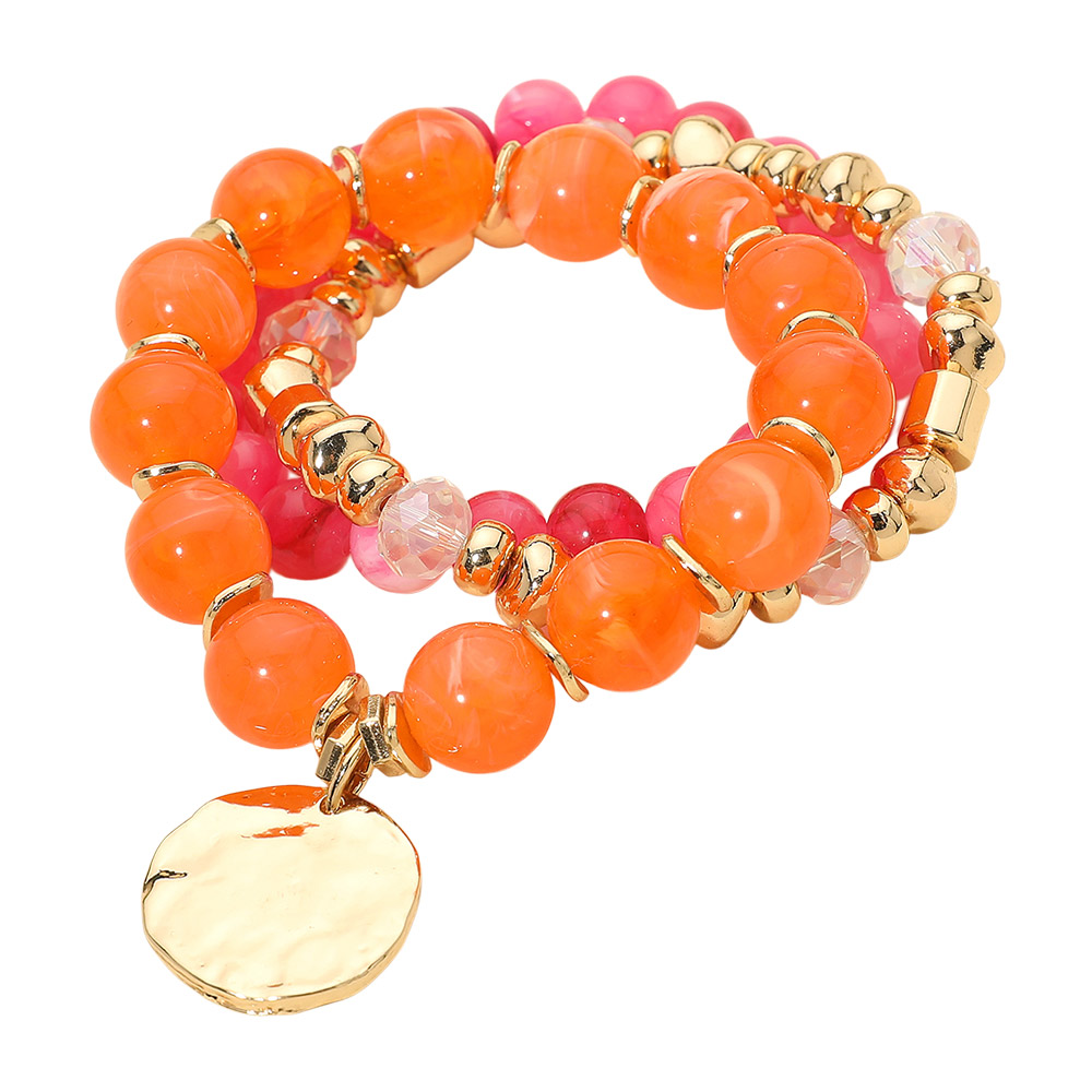 Details • Size : 1.25" H • Charm Size : 1" X 0.9" • Stretchable • Stylish stretch bracelet set featuring smooth round beads, faceted accents, and a dangling disc charm for added movement. Designed for comfortable wear and easy stacking, this versatile bracelet set elevates everyday outfits and pairs effortlessly with casual or dressy looks. • Lead and Nickel Compliant