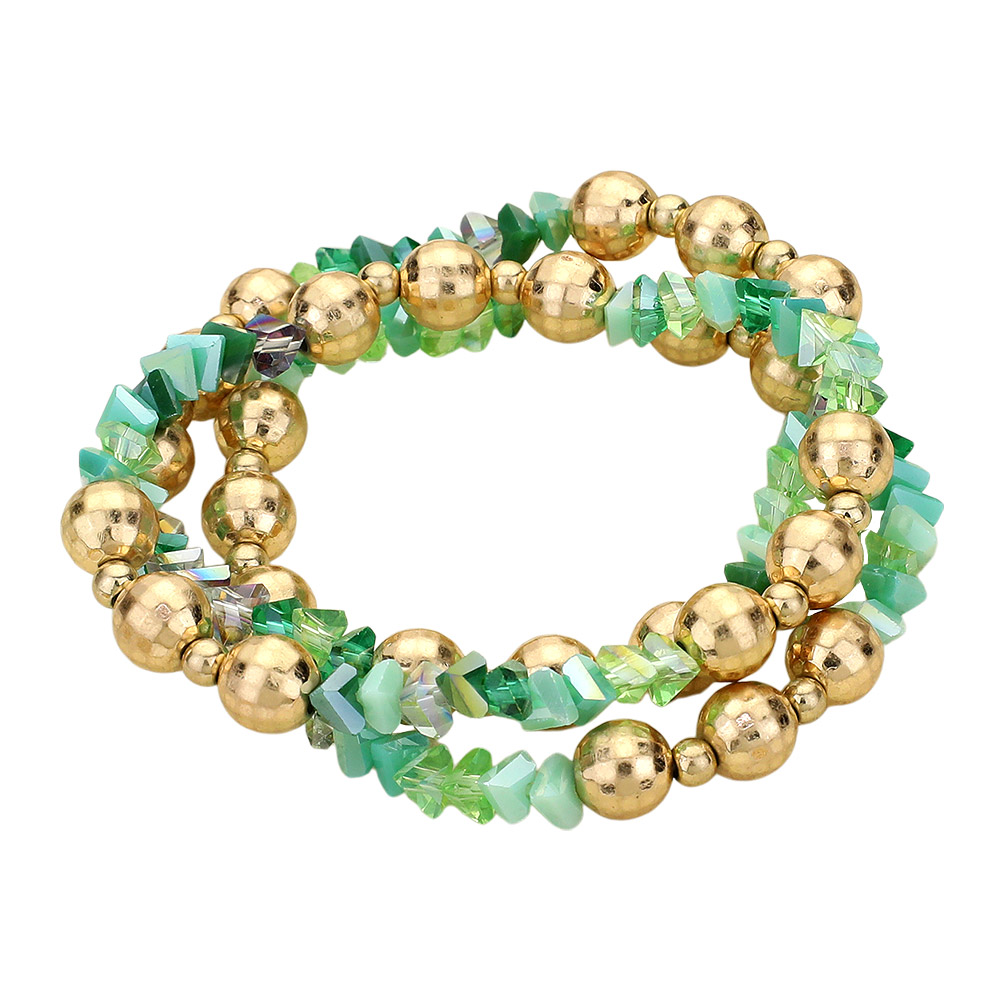 3PCS - Metal Ball Faceted Beaded Stretch Multi Layered Bracelets