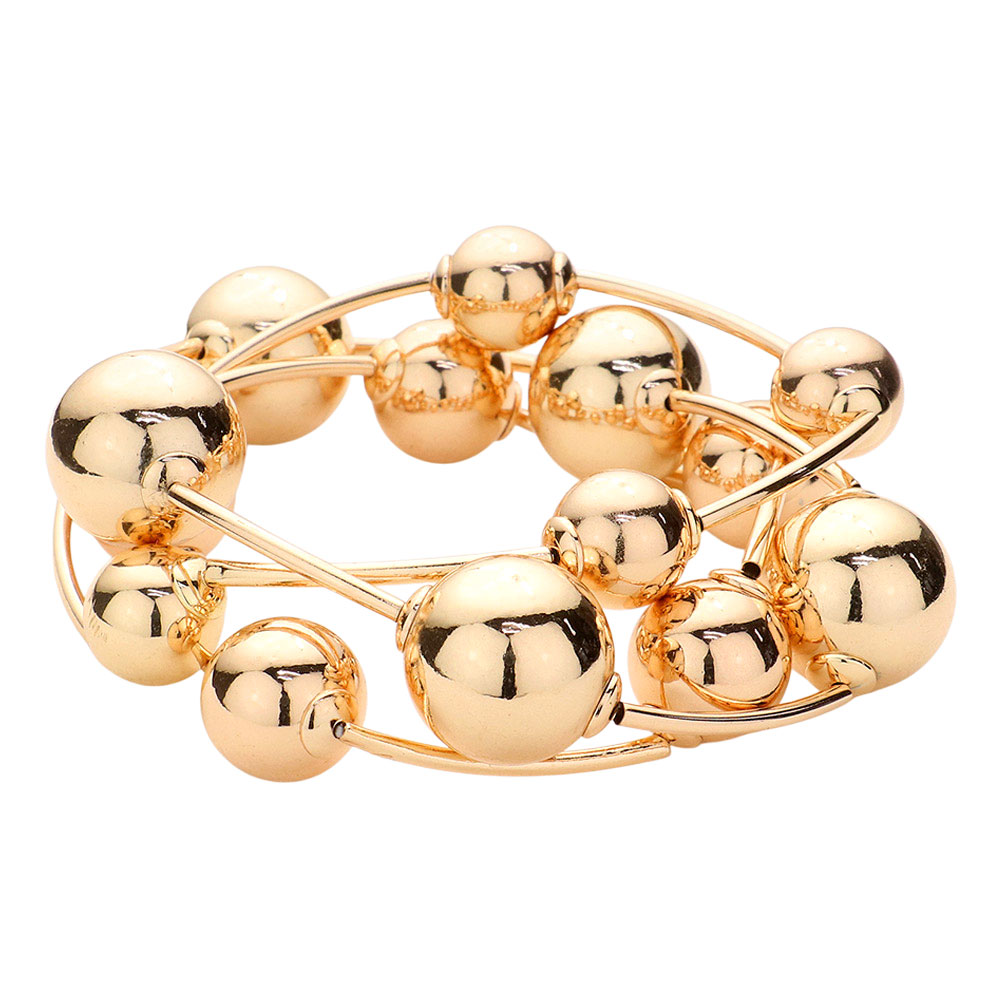 • Enhance your style with this modern beaded bangle set featuring sleek, polished spheres on layered metal bands. Perfect for stacking or wearing solo, this elegant design adds a refined statement to both casual and formal ensembles with timeless sophistication.
