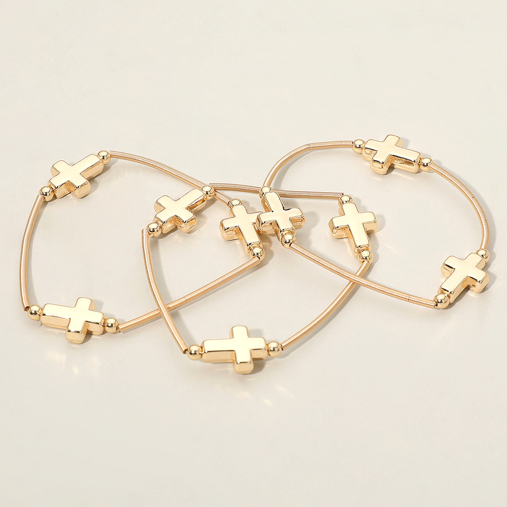3PCS - Metal Cross Station Stretch Multi Layered Bracelets 3PCS - Metal Cross Station Stretch Multi Layered Bracelets 3PCS - Metal Cross Station Stretch Multi Layered Bracelets