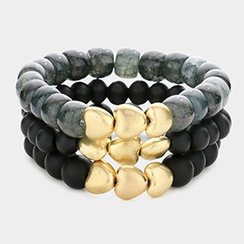 3PCS - Natural Stone Metal Beaded Stretch Multi Layered Bracelets