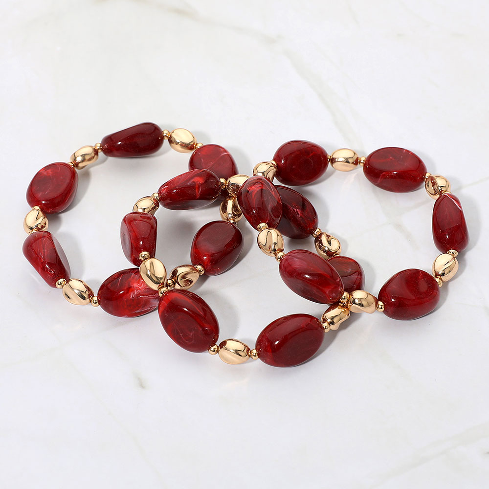 3PCS - Oval Pebble Beaded Stretch Multi Layered Bracelet