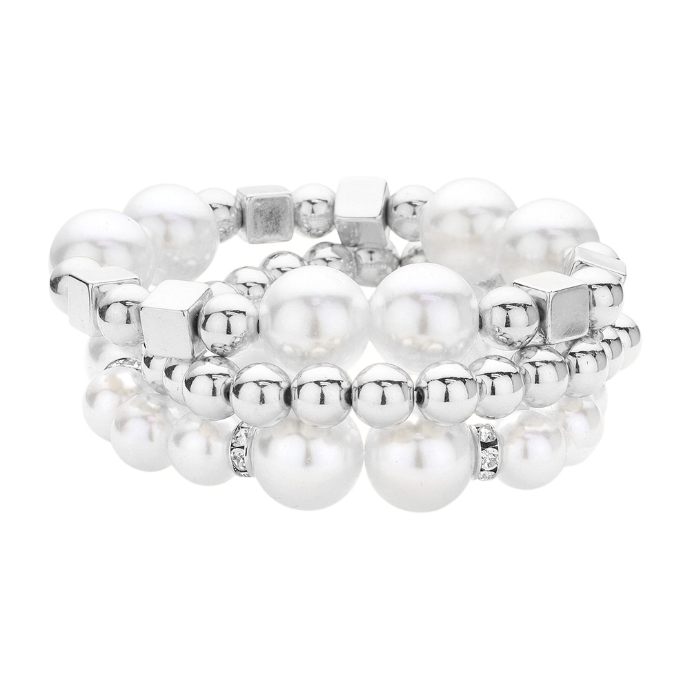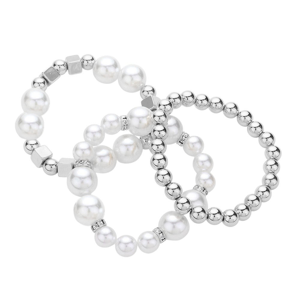 3PCS - Pearl Metal Ball Beaded Stretch Multi Layered Bracelets 3PCS - Pearl Metal Ball Beaded Stretch Multi Layered Bracelets 3PCS - Pearl Metal Ball Beaded Stretch Multi Layered Bracelets