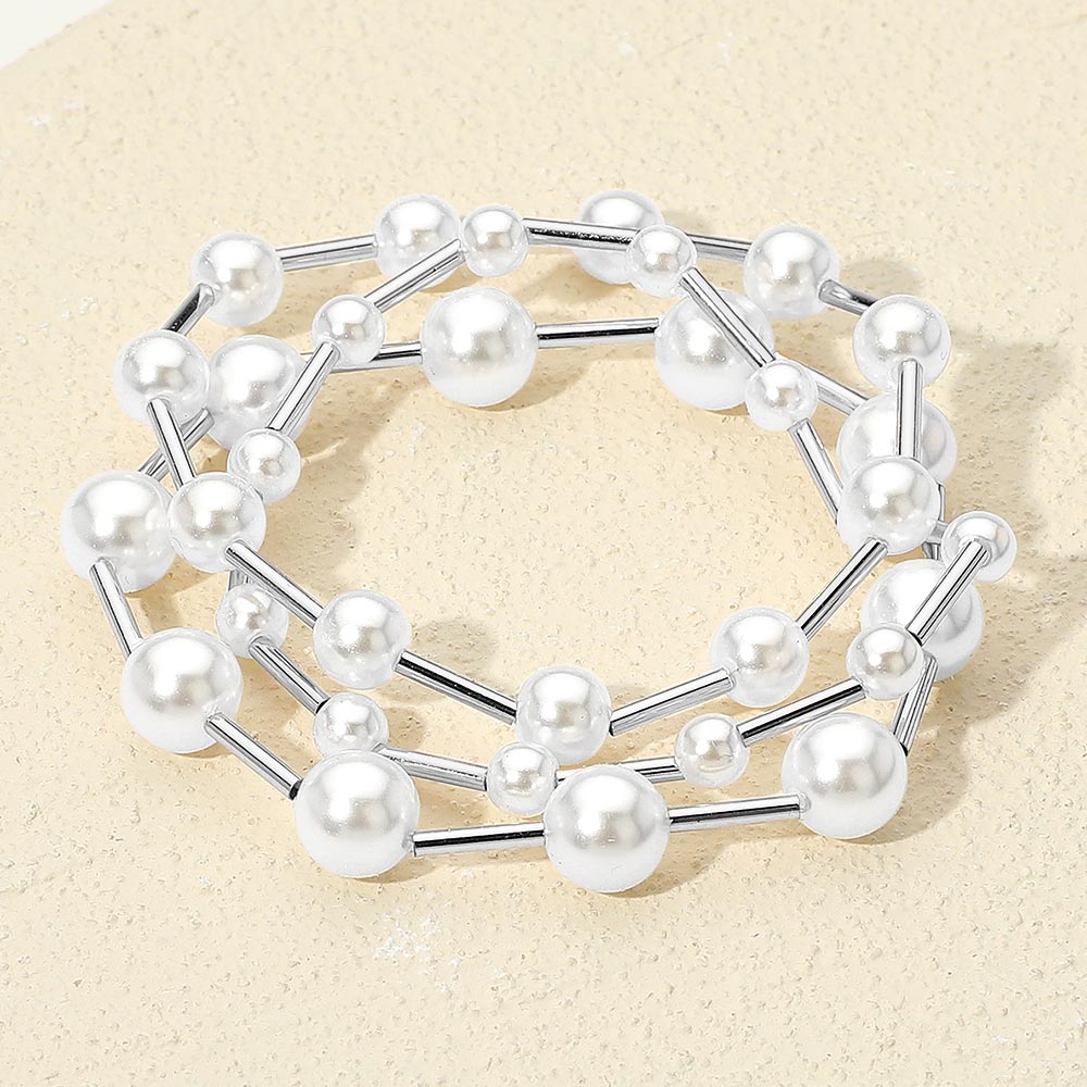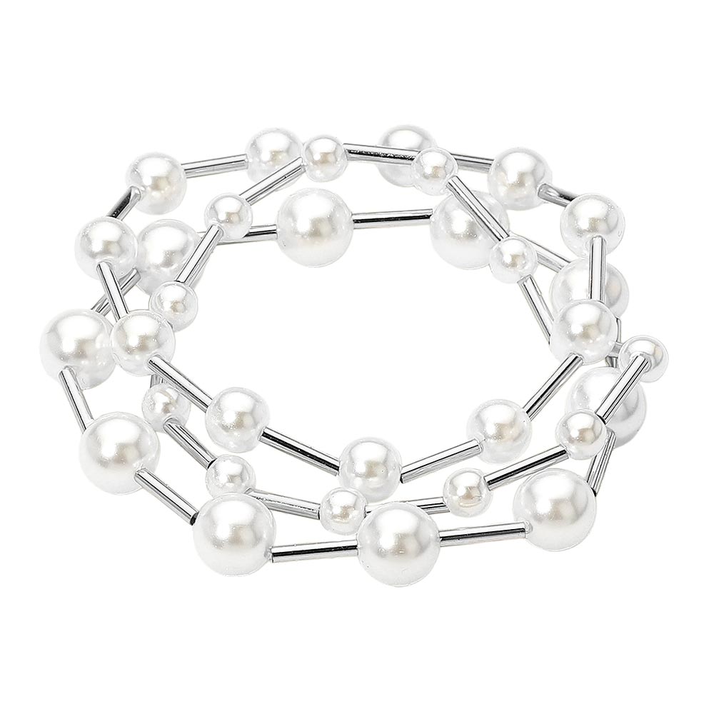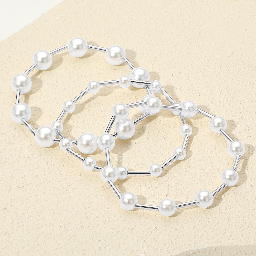 Details • Size : 1" H • Stretchable • Elegant stretch bracelet with three rows of graduated beads and slim connectors. A refined accessory that adds timeless charm to both casual and formal outfits. • Lead and Nickel Compliant