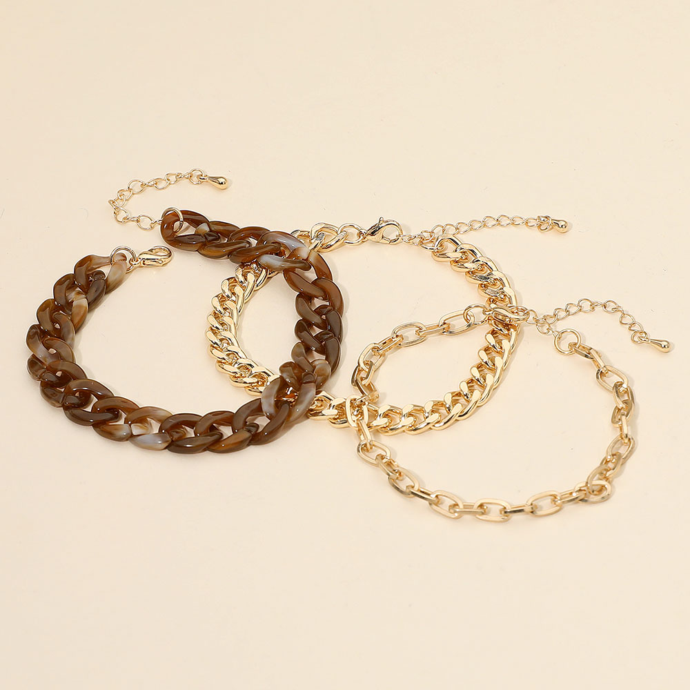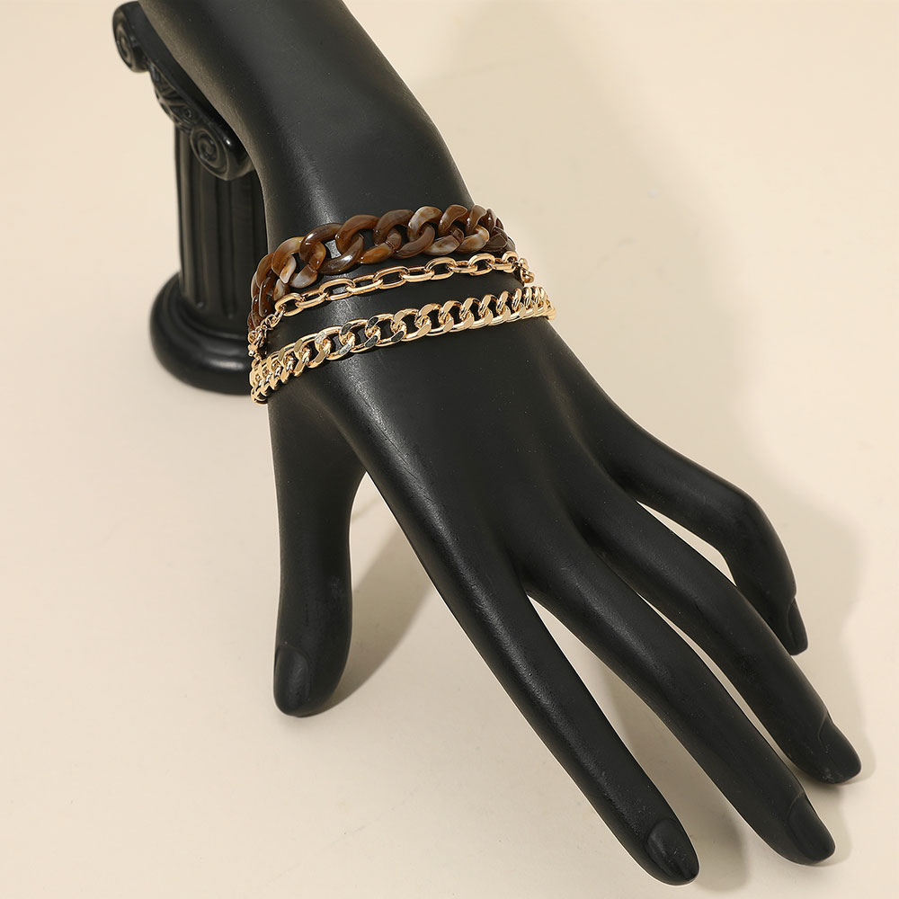 3PCS - Resin Metal Chain Link Multi Layered Bracelets