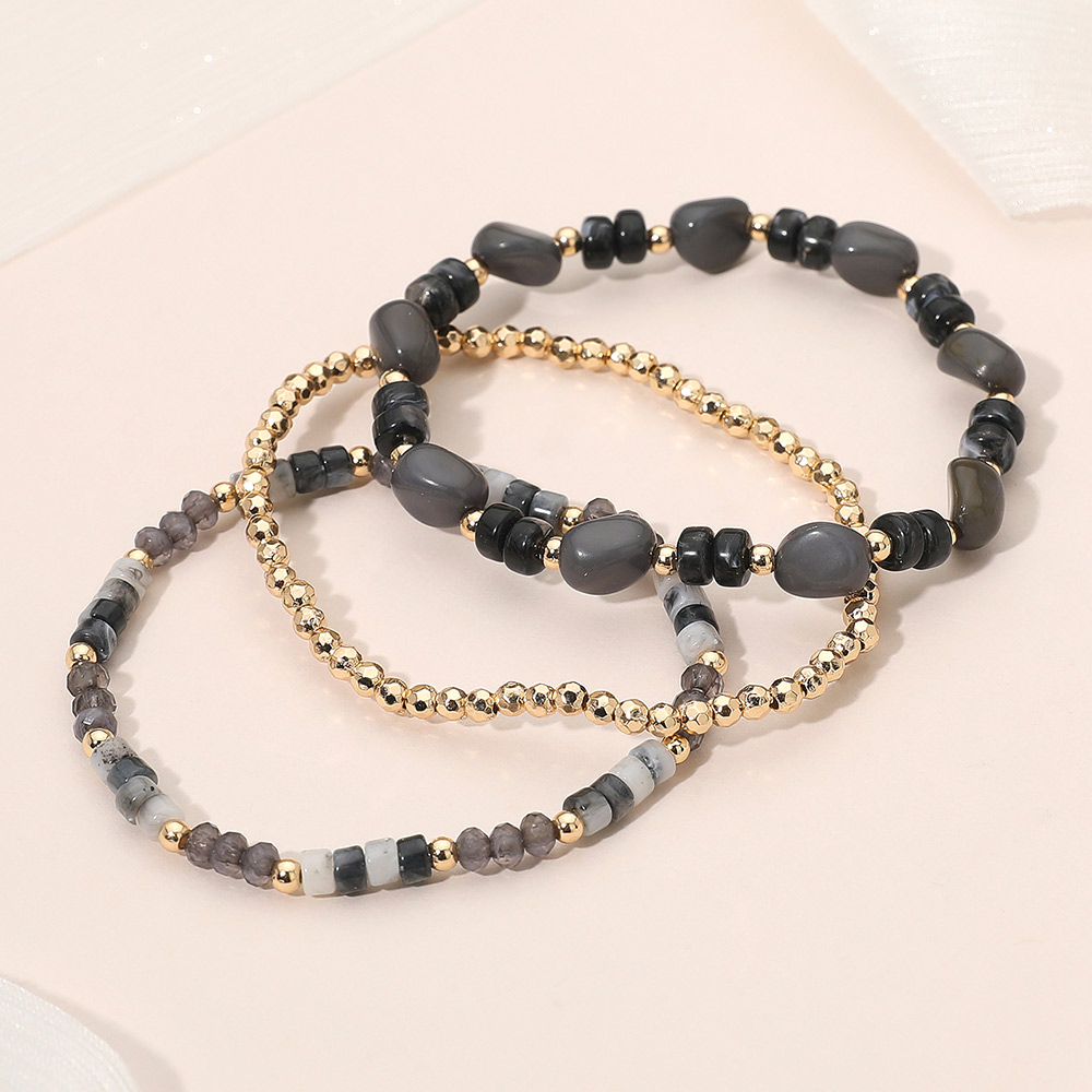 3PCS - Resin Pebble Metal Ball Beaded Stretch Multi Layered Bracelets