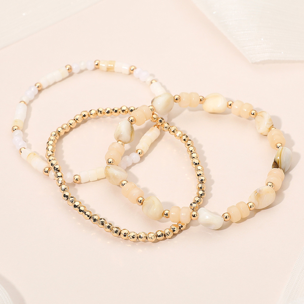 3PCS - Resin Pebble Metal Ball Beaded Stretch Multi Layered Bracelets