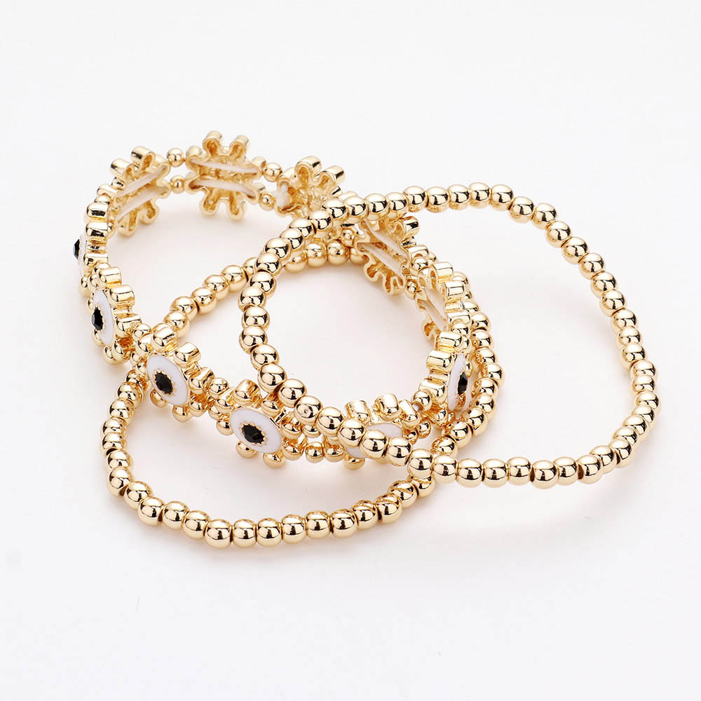 3PCS - Rhinestone Enamel Floral Stretch Layered Bracelets
