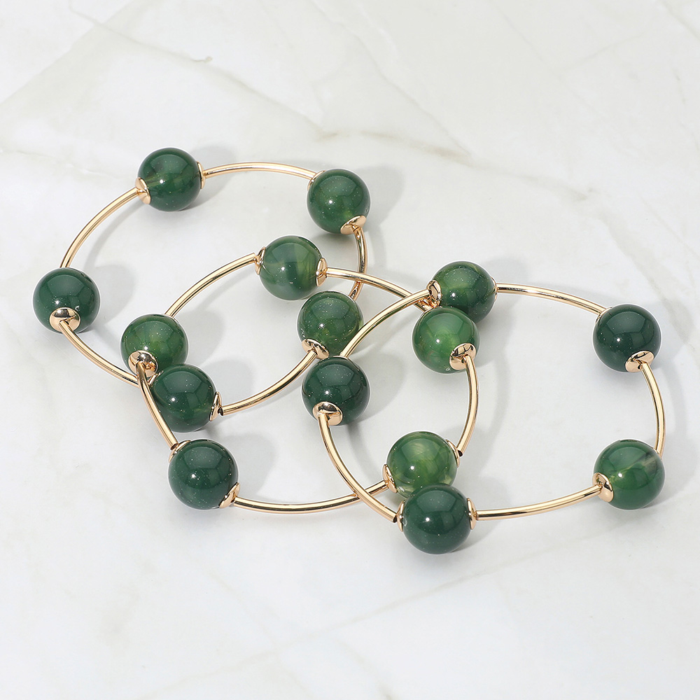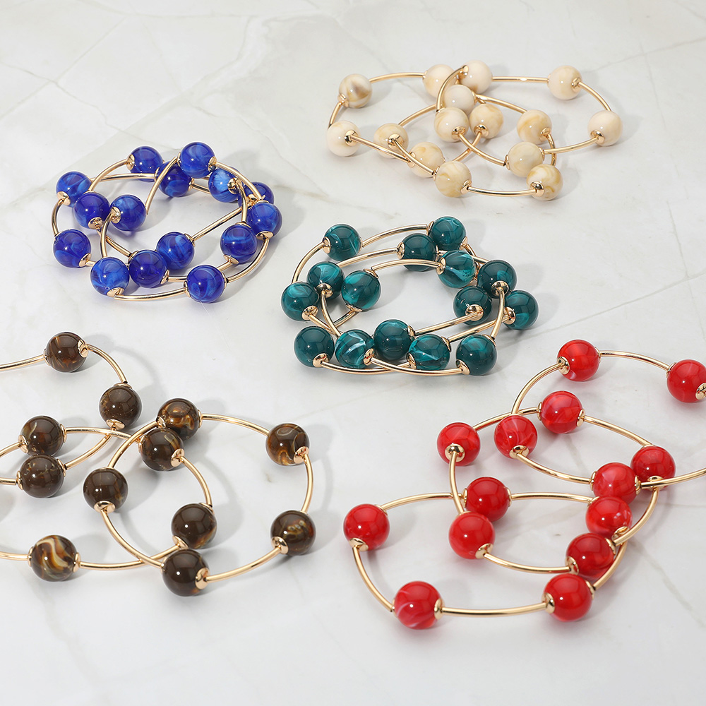 Details • Size : 1.6" H • Stretchable • Stylish bangle bracelet set featuring smooth wire bands and rounded beads arranged in a layered design. A versatile accessory that adds a touch of elegance to everyday and dressy outfits, perfect for stacking or wearing solo.