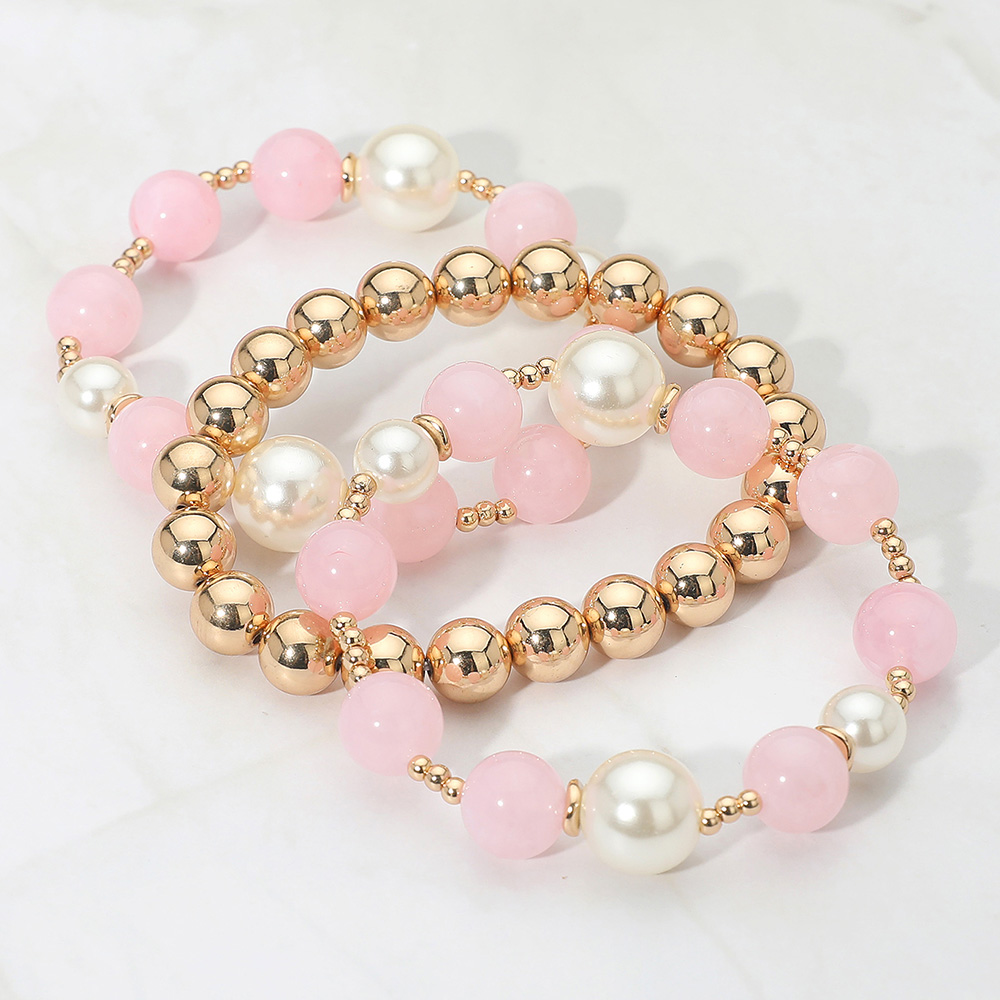 3PCS - Pearl Ceramic Metal Ball Beaded Stretch Multi Layered Bracelets