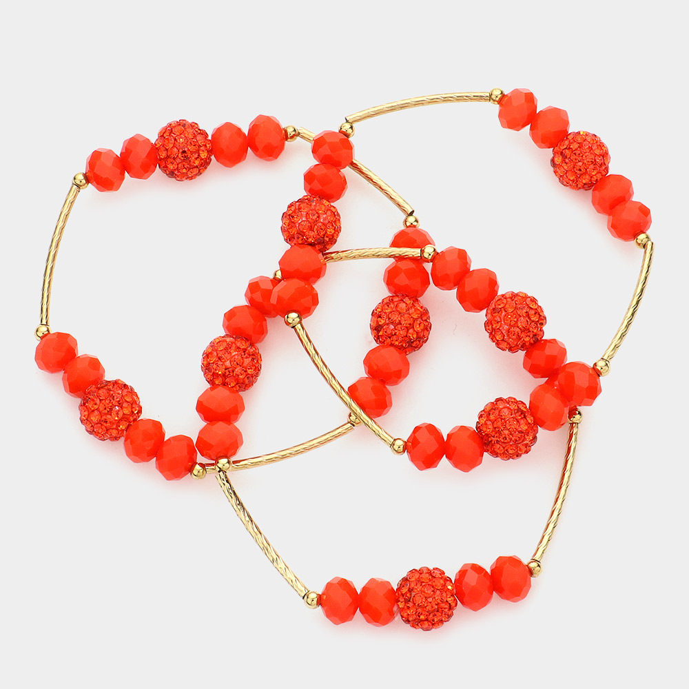 3PCS - Shamballa Ball Faceted Beaded Stretch Bracelets
