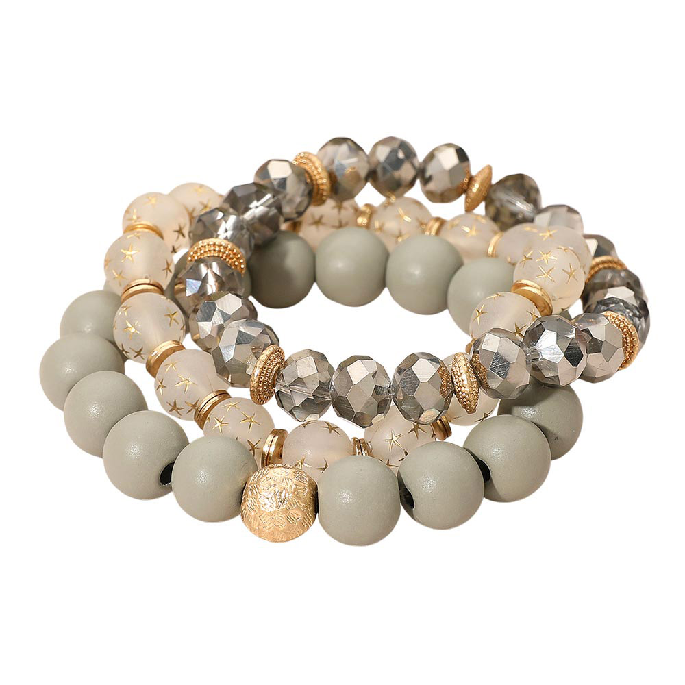 • Stylish stackable bracelet set featuring mixed bead sizes, faceted accents, and decorative spacer details. Designed for easy layering, this stretch bracelet trio adds a chic, textured touch to everyday outfits or special occasions.