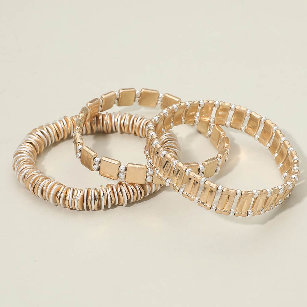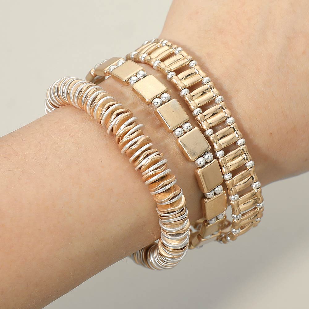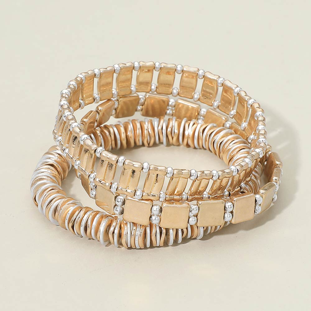 3PCS - Two Tone Metal Various Beaded Stretch Multi Layered Bracelets 3PCS - Two Tone Metal Various Beaded Stretch Multi Layered Bracelets 3PCS - Two Tone Metal Various Beaded Stretch Multi Layered Bracelets 3PCS - Two Tone Metal Various Beaded Stretch Multi Layered Bracelets