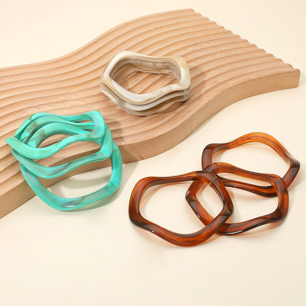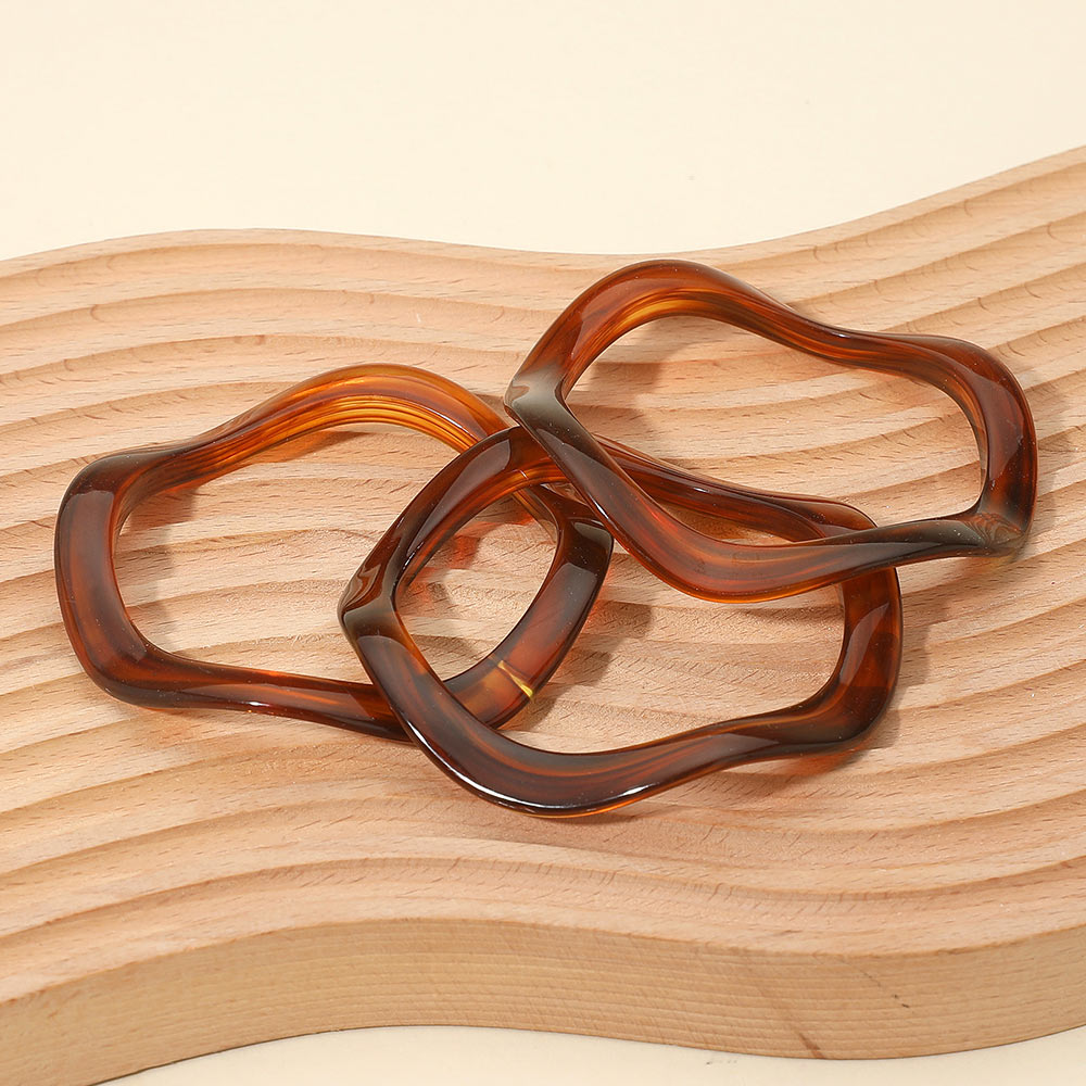 Details • Size : 1" H, 2.5" D • Add a bold twist to your look with this 3-piece resin bangle set featuring a unique wavy design. Lightweight and stackable, these bangles bring modern flair to casual or dressy outfits, making them the perfect fashion-forward accessory for everyday wear or gifting.