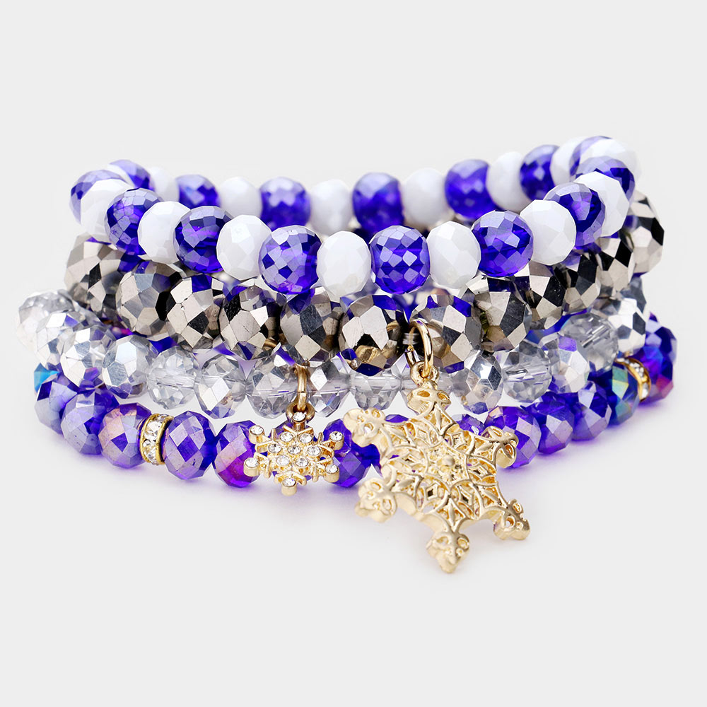 4PCS - Christmas Snowflake Charm Bead Stretch Layered Bracelets