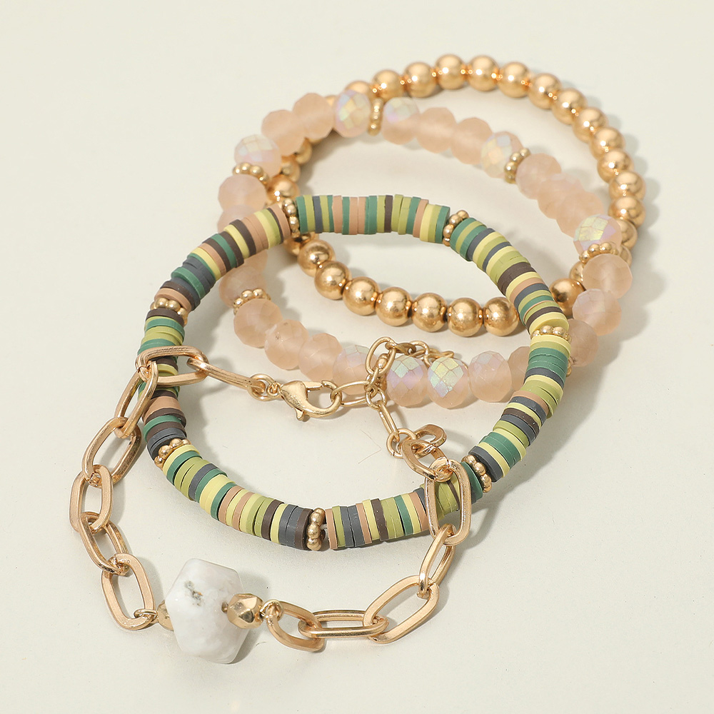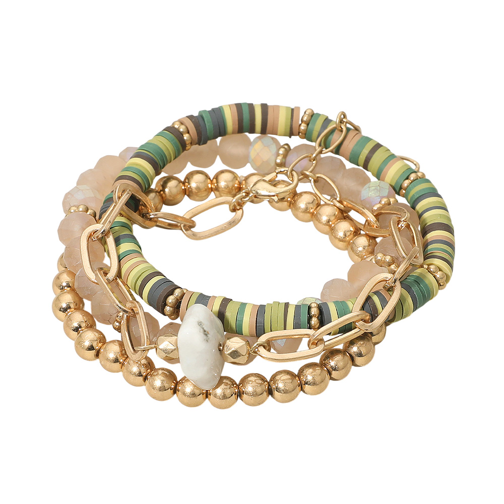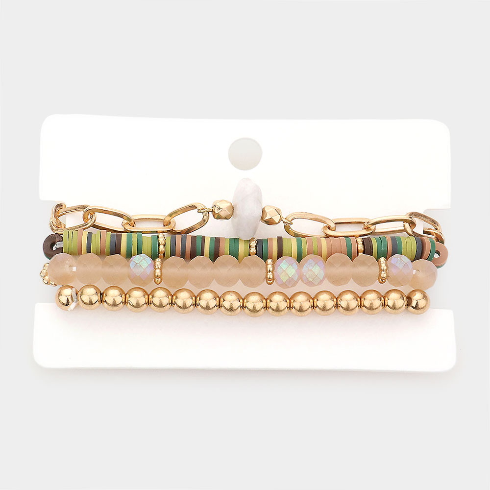 4PCS - Natural Stone Accented Chain Bracelet Multi Beaded Stretch Bracelets Set