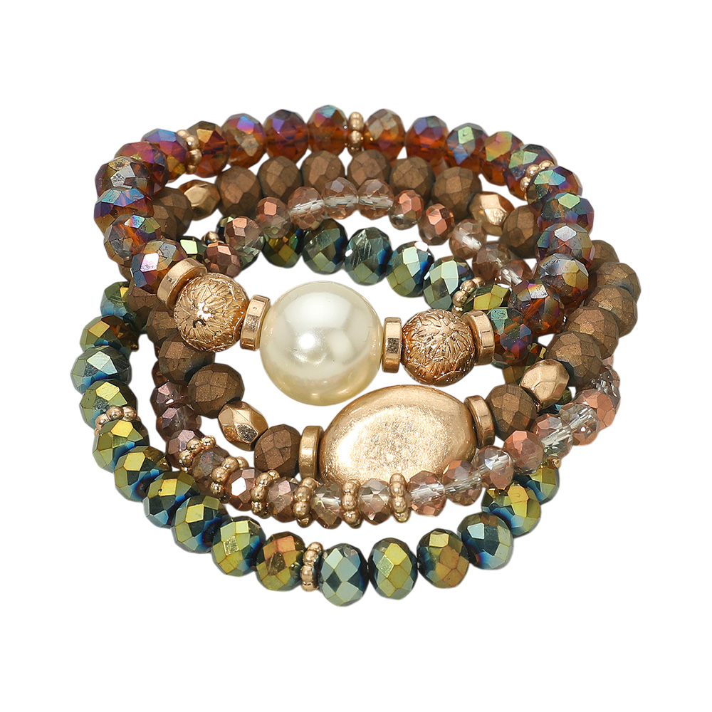 Details • Size : 1.75" H • Stretchable • This elegant bracelet set features multiple beaded strands designed for stacking, highlighted by bold statement accents that add a touch of sophistication. With its versatile design, this set transitions effortlessly from casual to formal wear, making it a must-have addition to any jewelry collection. • Lead and Nickel Compliant