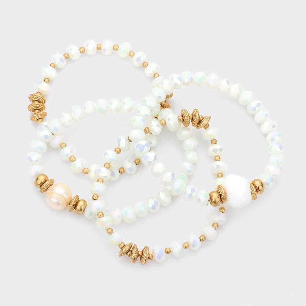 4PCS - Pearl Accented Faceted Beads Stretch Bracelets