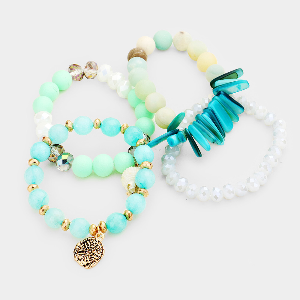 4PCS - Semi Precious Stone Sand Dollar Bead Stretch Bracelets