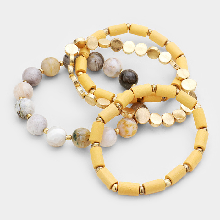 4PCS - Semi Precious Wood Bead Stretch Bracelets