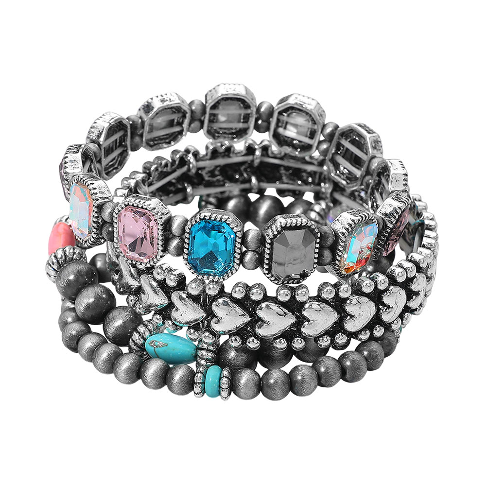 4PCS - Vintage Gem Beaded Stretch Multi Layered Bracelets