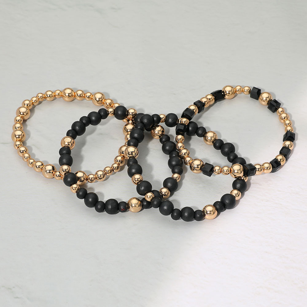 4PCS- Wooden Metal Ball Beaded Stretch Multi Layered Bracelets