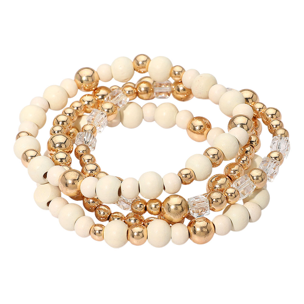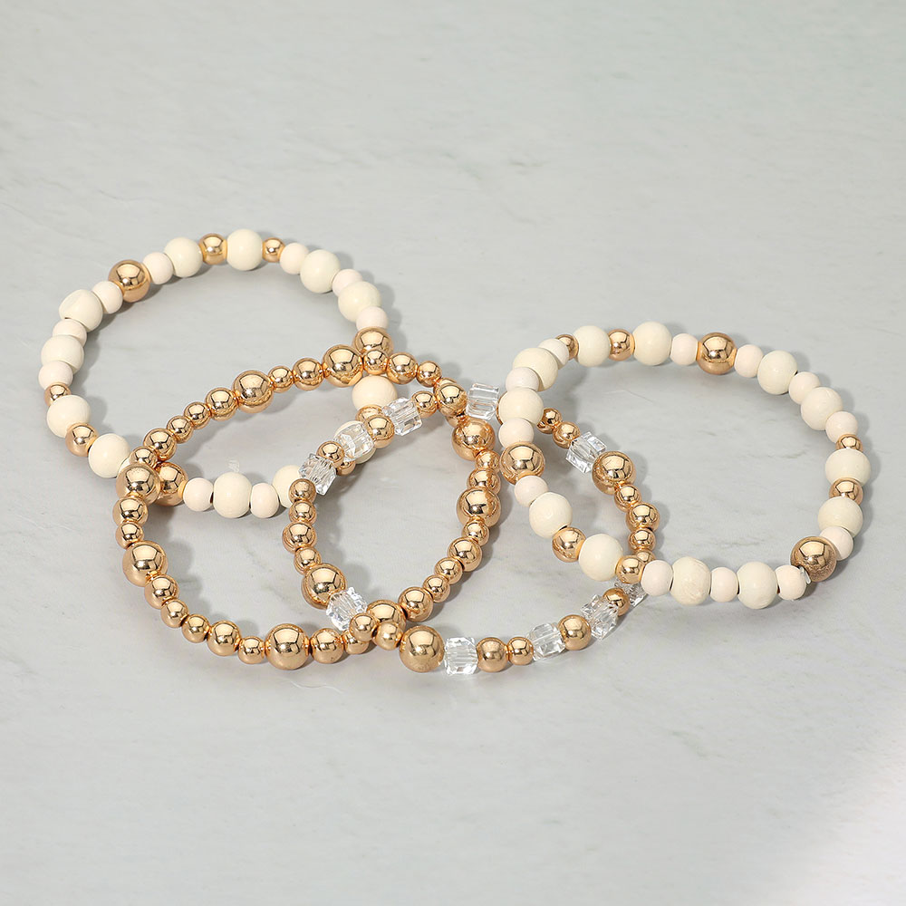 4PCS- Wooden Metal Ball Beaded Stretch Multi Layered Bracelets