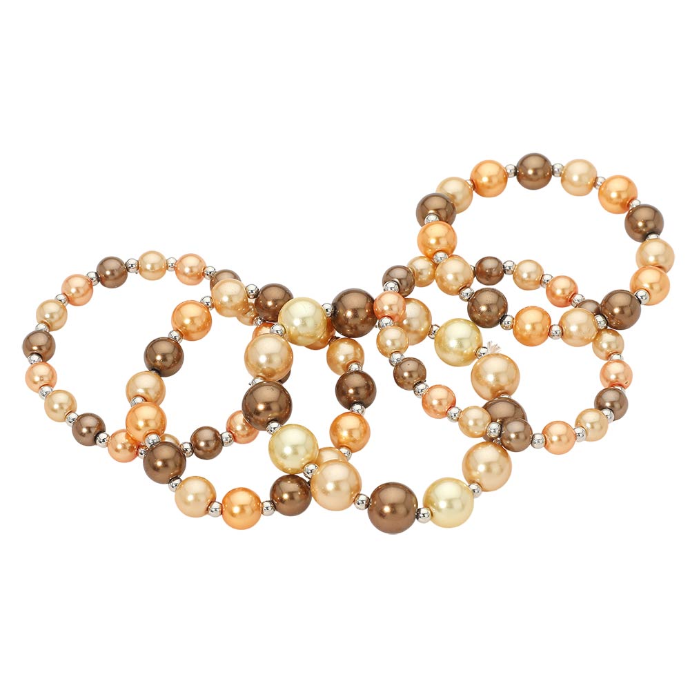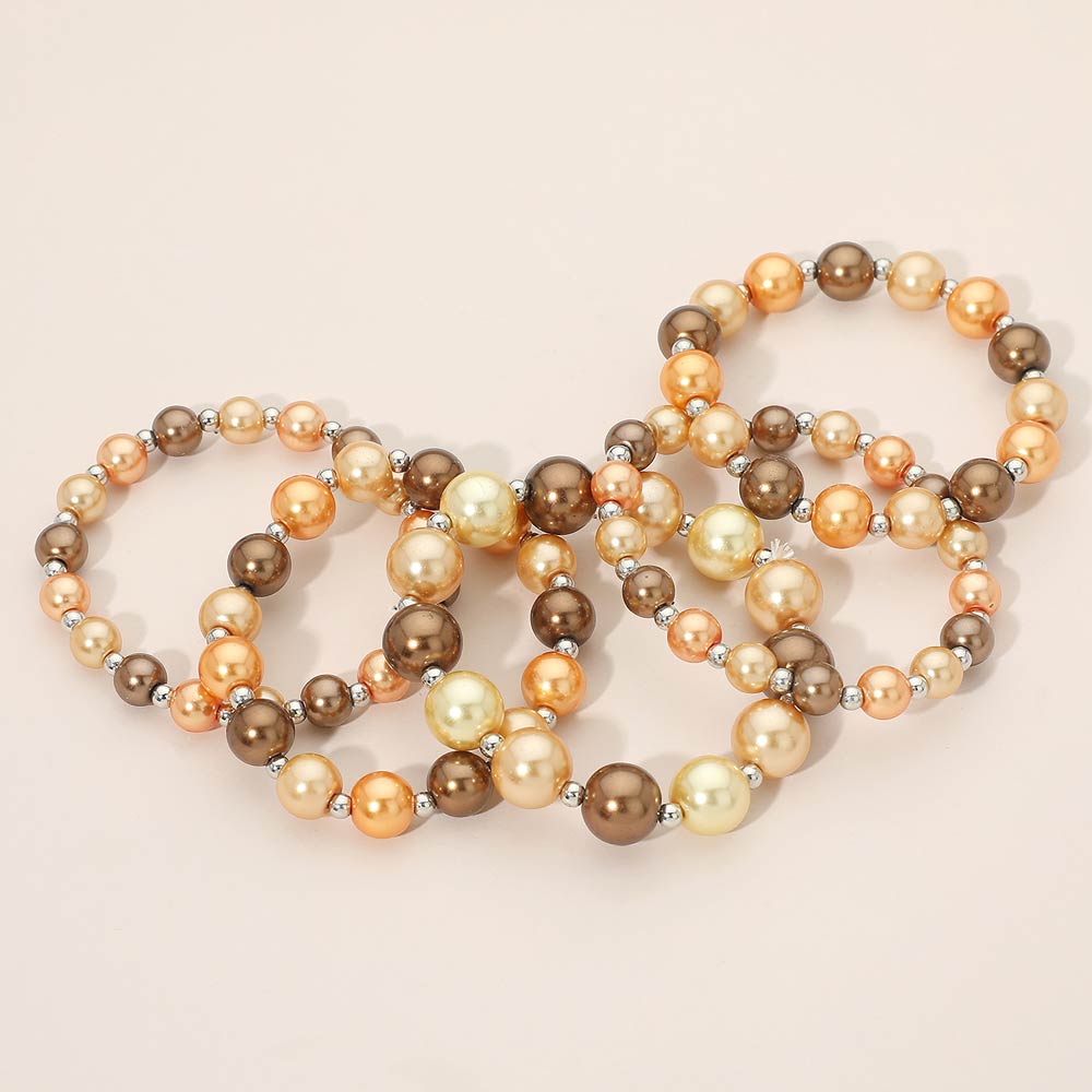 5PCS - Colorful Pearl Beaded Stretch Multi Layered Bracelets