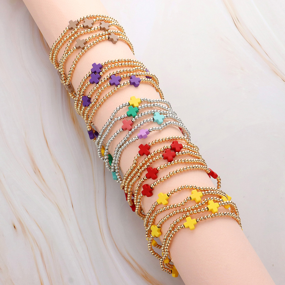 • This layered stretch bracelet set features delicate beaded strands accented with cross-shaped charms for a meaningful yet trendy look. Designed for easy stacking, it offers a balanced mix of texture and detail that works for everyday wear, gifting, and faith-inspired or fashion-focused accessory collections.
