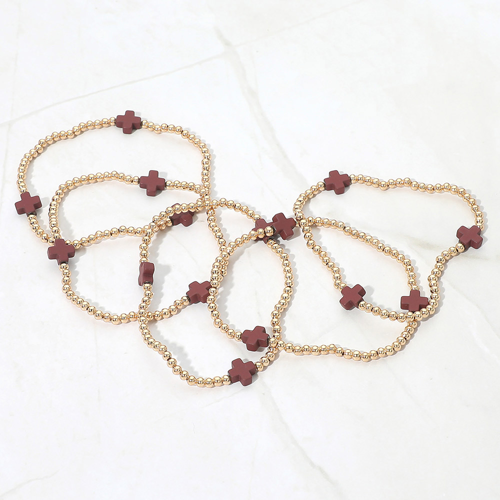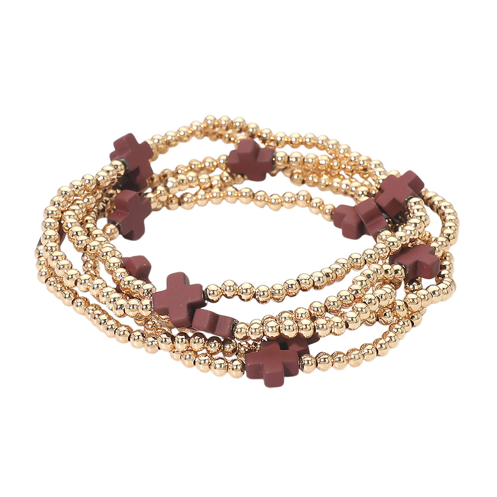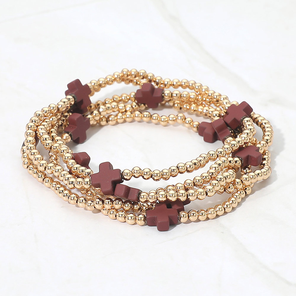 5PCS - Cross Pointed Metal Ball Beaded Stretch Multi Layered Bracelets