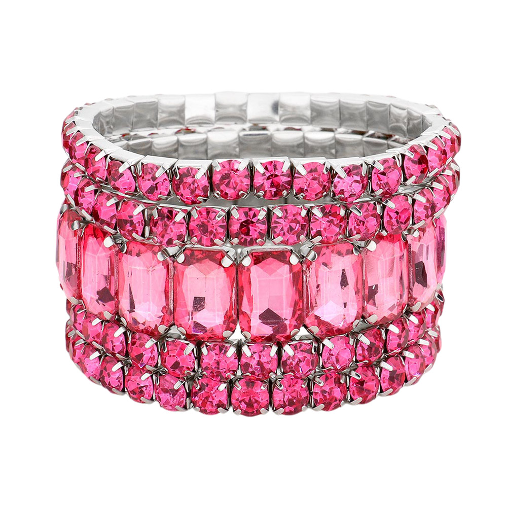 5PCS - Emerald Cut Round Stone Stretch Evening Bracelets 5PCS - Emerald Cut Round Stone Stretch Evening Bracelets