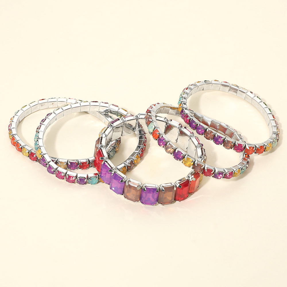 5PCS - Emerald Cut Round Stone Stretch Evening Bracelets 5PCS - Emerald Cut Round Stone Stretch Evening Bracelets 5PCS - Emerald Cut Round Stone Stretch Evening Bracelets